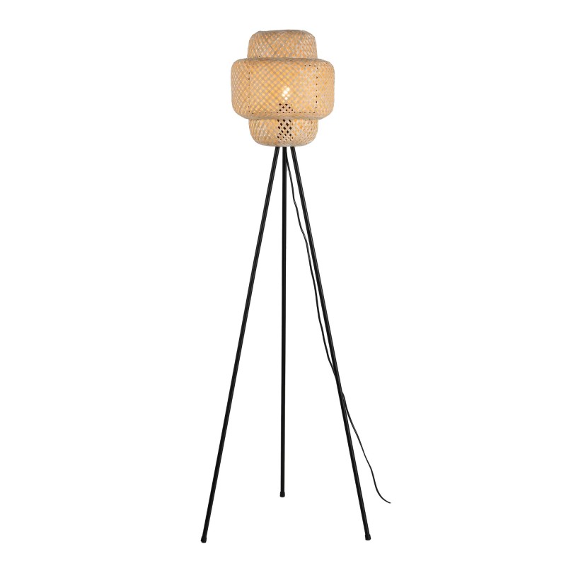 Il est équipé d'un abat-jour en osier qui diffuse une lumière indirecte douce et ambiante.