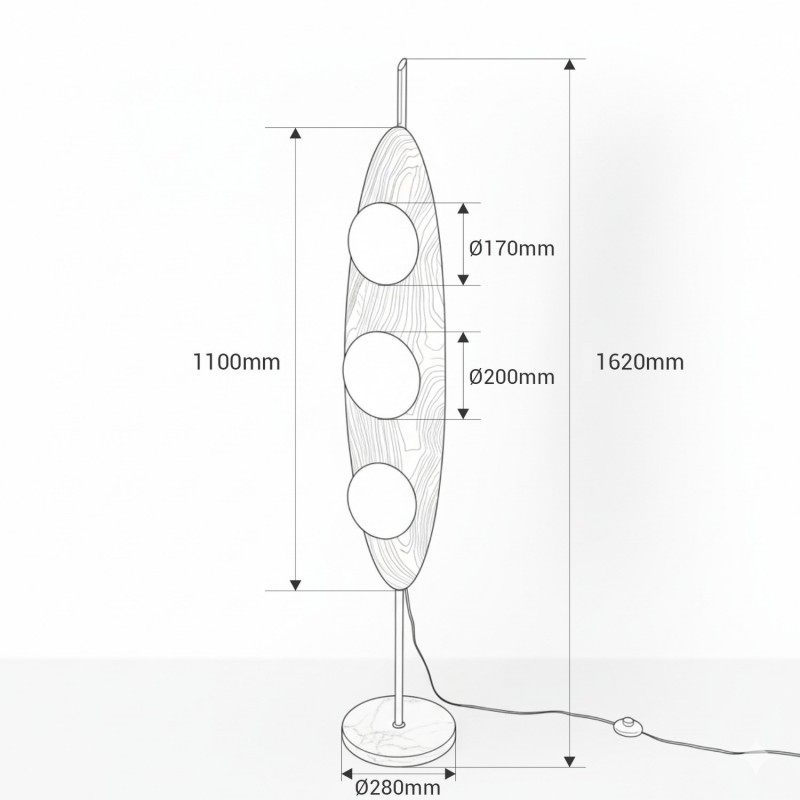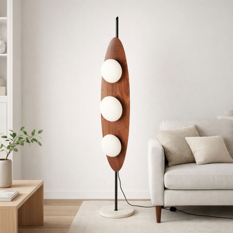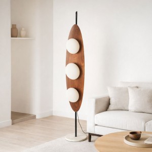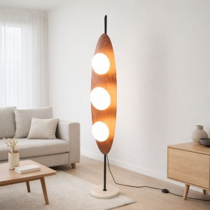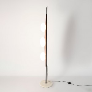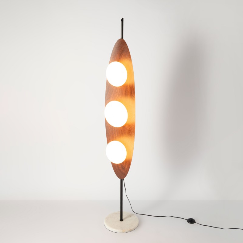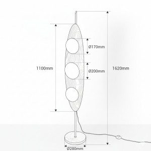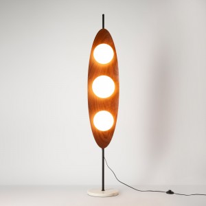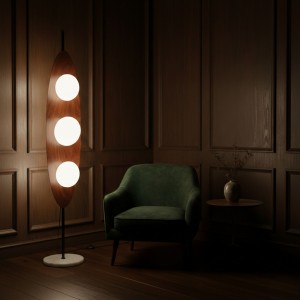 Ce lampadaire allie la présence esthétique et la fonctionnalité dans une pièce protagoniste, conçue pour apporter de la chaleur et un éclairage d'ambiance agréable.