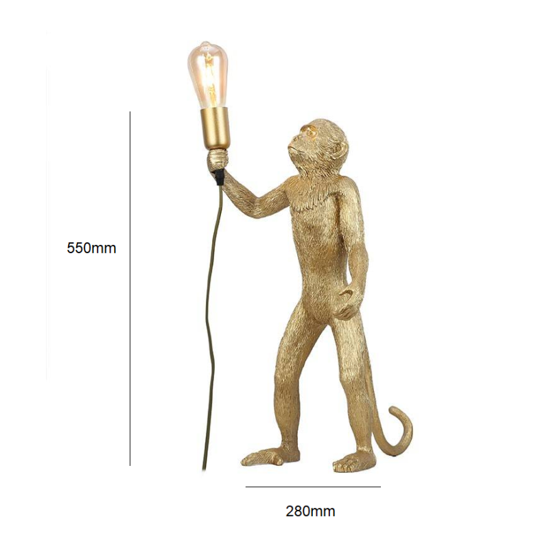 La lampe singe en résine de haute qualité se prête parfaitement à une utilisation comme lampe à poser, mais également comme lampadaire, s'adaptant ainsi harmonieusement à différents espaces de décoration.