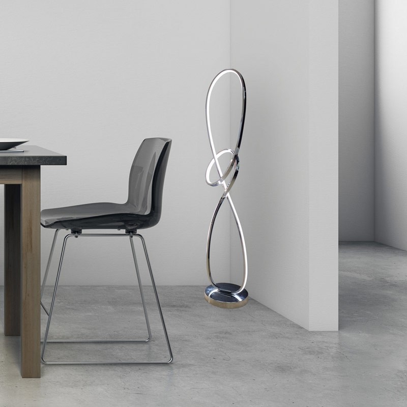 Caractéristiques techniques : Tension : 220-240 V/CA. Puissance : 25W. Lumens : 2375. Dimmable: 3 niveaux d'intensité Puces SMD2835 Sanan Température de couleur : blanc chaud 3000K Dimensions : Ø230x210x1190 mm. Angle d'ouverture du faisceau lumineux : 120° Indice de protection : IP20. Couleur chromée Matériau : aluminium |