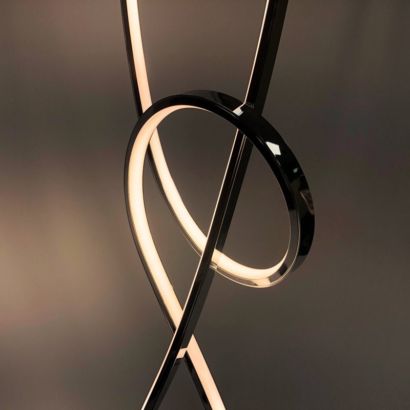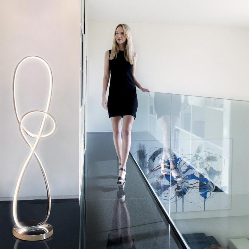 La lampe sur pied "Loren" (gamme Hollywood) est formée de deux barres chromées qui s'entrecroisent pour composer une structure aux allures futuristes – un design accrocheur qui ne manquera pas de dynamiser votre intérieur où que vous l'installiez. La bordure interne de ses barres est bordée de puces LED offrant un bel éclairage blanc chaud. Le pied chromé de la lampe Loren, de 230mm de diamètre, est lesté pour prévenir tout risque de chute.
