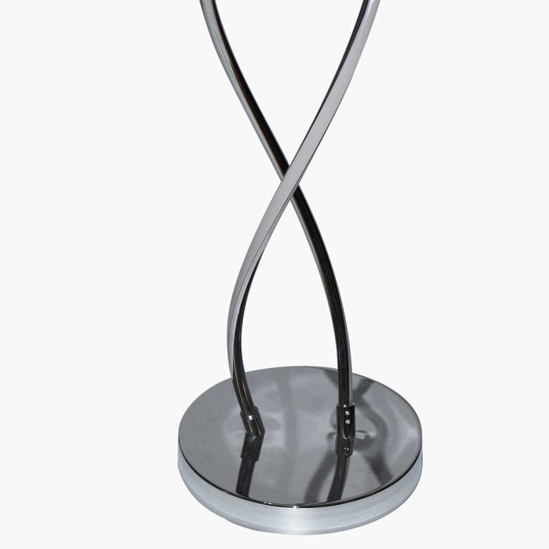Lampadaire LED au design minimaliste d'inspiration futuriste. Ses deux tiges s'enroulent en spirale pour former une double hélice chic et moderne. Cette structure aux superbes finitions chromées est entièrement bordée de puces LED totalisant 25W.