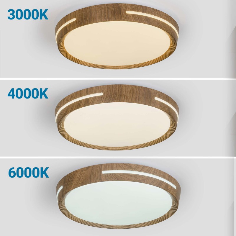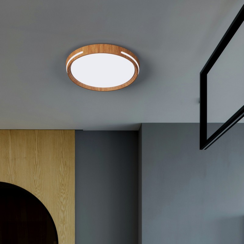 Plafonnier LED CCT - 24W - Effet latéral - Couleur bois Ø40cm