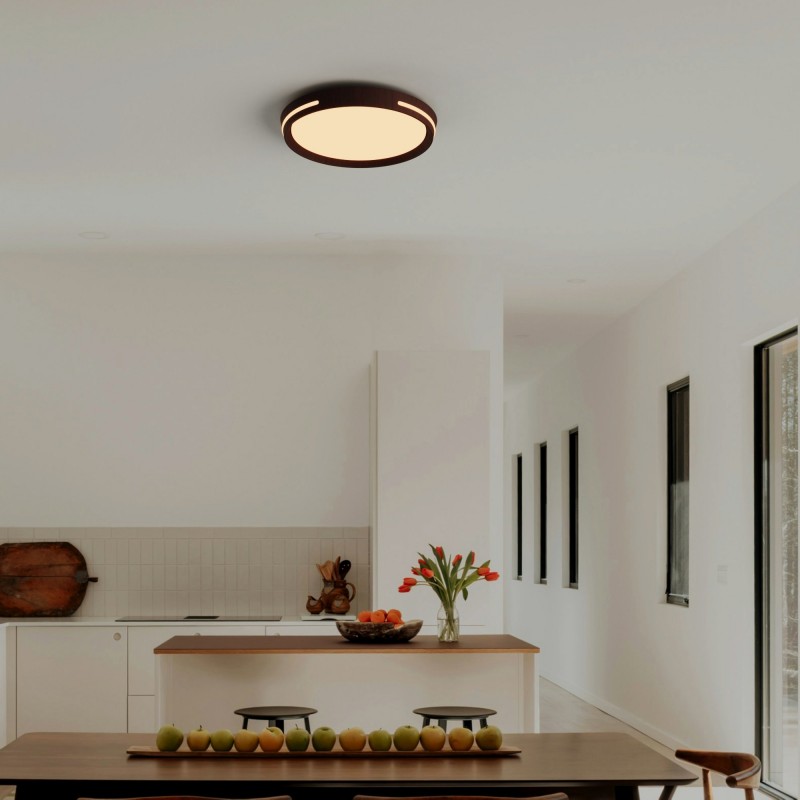Plafonnier LED CCT - 24W - Effet latéral - Couleur bois Ø40cm