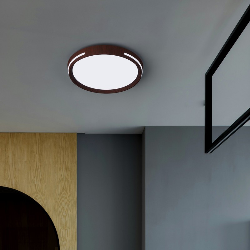 Plafonnier LED 24W, en polycarbonate avec effet bois.