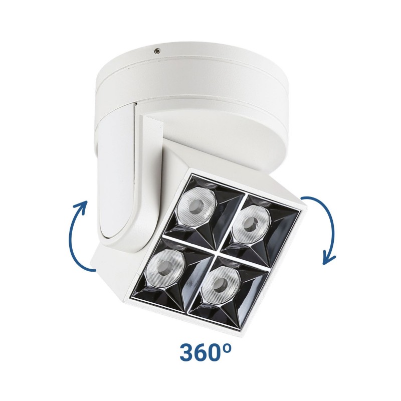 - Design carré : Structure composée de 4 spots indépendants, permettant d'obtenir un éclairage uniforme et décoratif.
