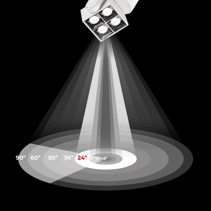 - Angle d'éclairage de 24°: idéal pour accentuer les détails décoratifs et les produits.