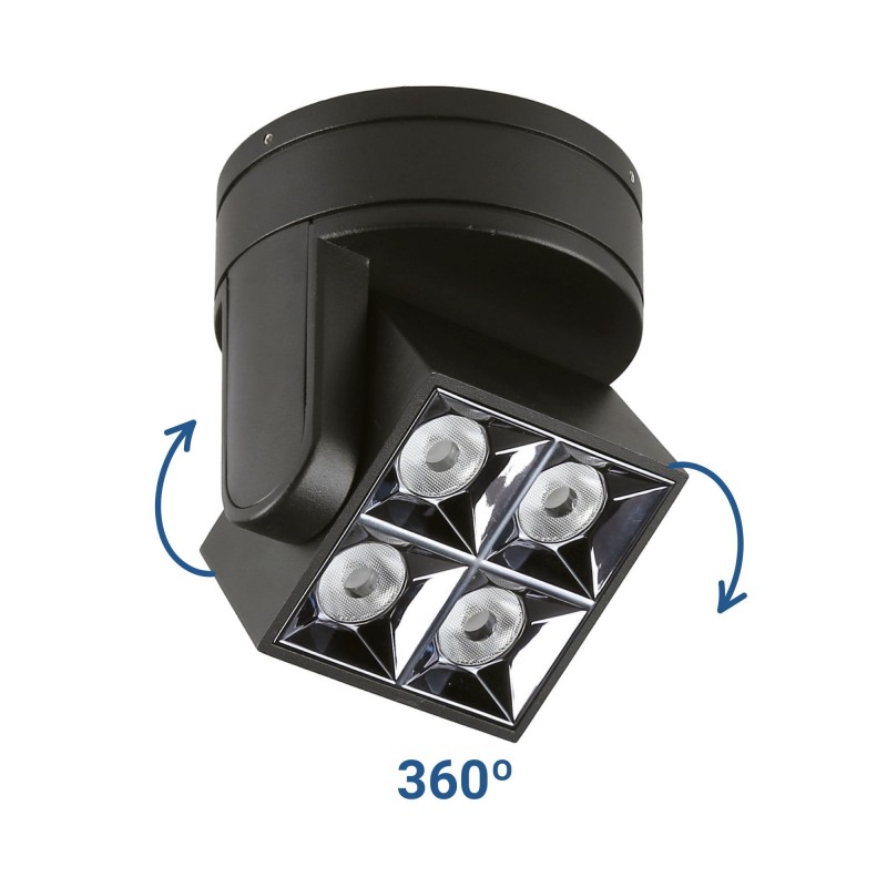 • Design carré : Structure composée de 4 spots indépendants, permettant d'obtenir un éclairage uniforme et décoratif.