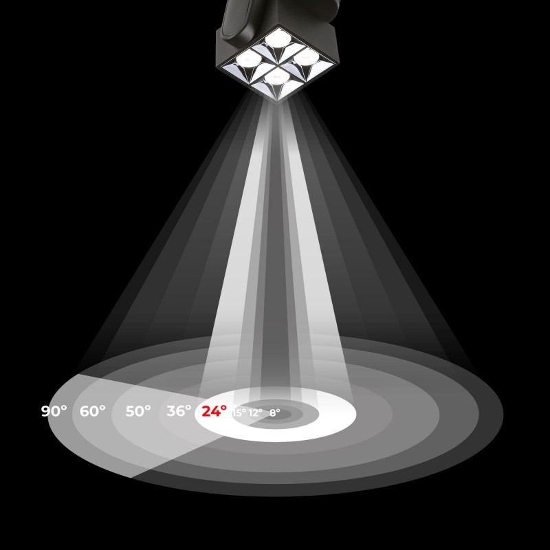 • Angle d'éclairage de 24°: idéal pour accentuer les détails décoratifs et les produits.