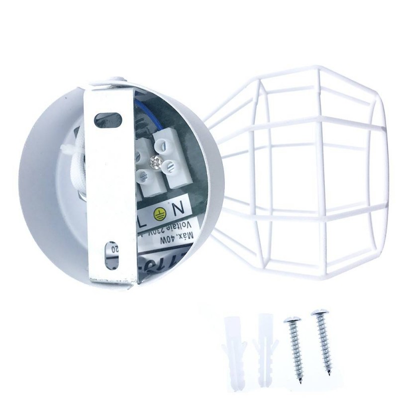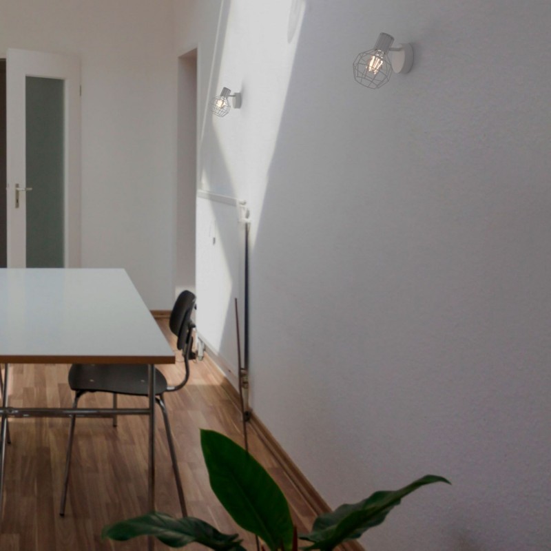 Luminaire "AZOR" au style moderne minimaliste, pouvant aussi bien s'utiliser comme applique murale que comme plafonnier. Sa douille E14 est surmontée d'une cage stylisée très décorative, entièrement orientable pour un éclairage sur mesure.