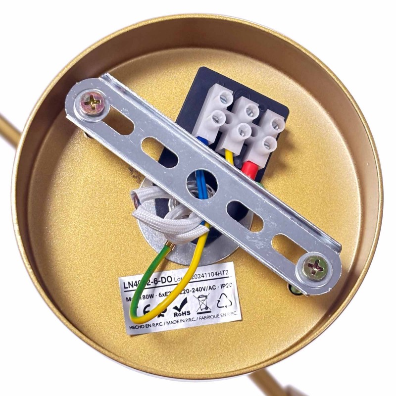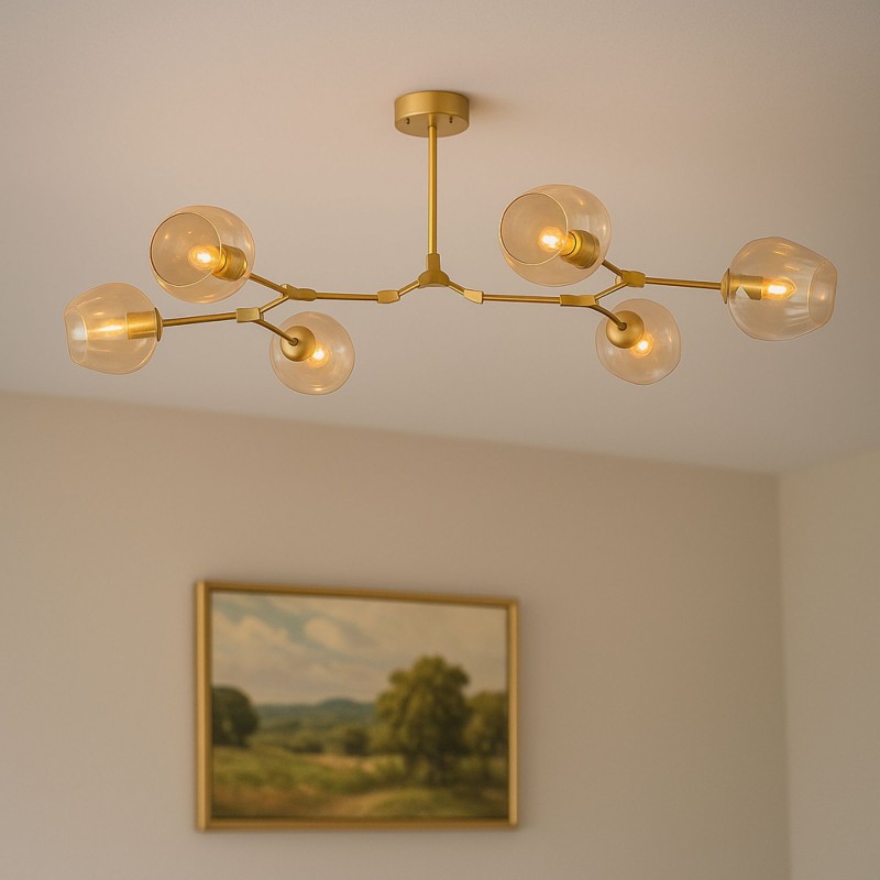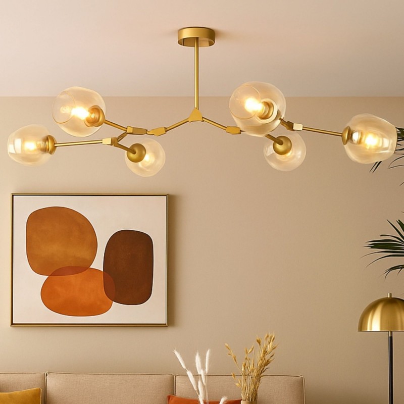 - Compatibilité polyvalente : fonctionne avec 6 ampoules E27 (G45 suggérée), ce qui permet de choisir le type de lumière en fonction de l'ambiance souhaitée.
