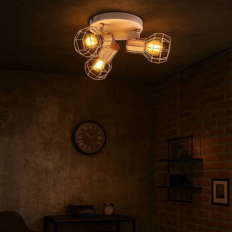 Très décoratif avec ses cages stylisées abritant 3 spots E14 (non fournis), ce plafonnier "AZNOR" de style scandinave/industriel offre un éclairage sur mesure: les spots sont orientables, permettant un ciblage précis de la lumière en fonction de vos besoins.
