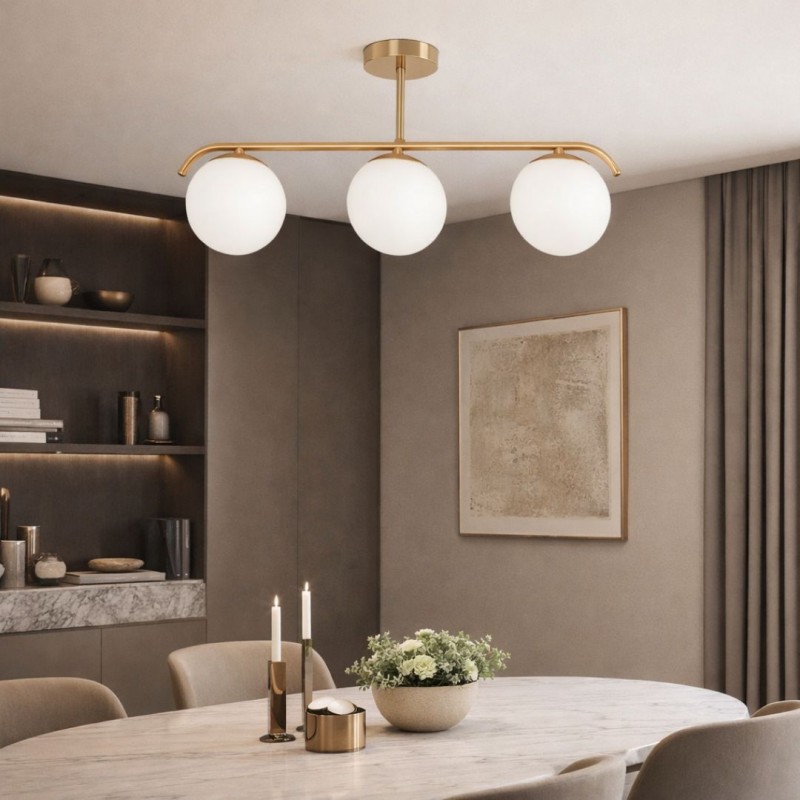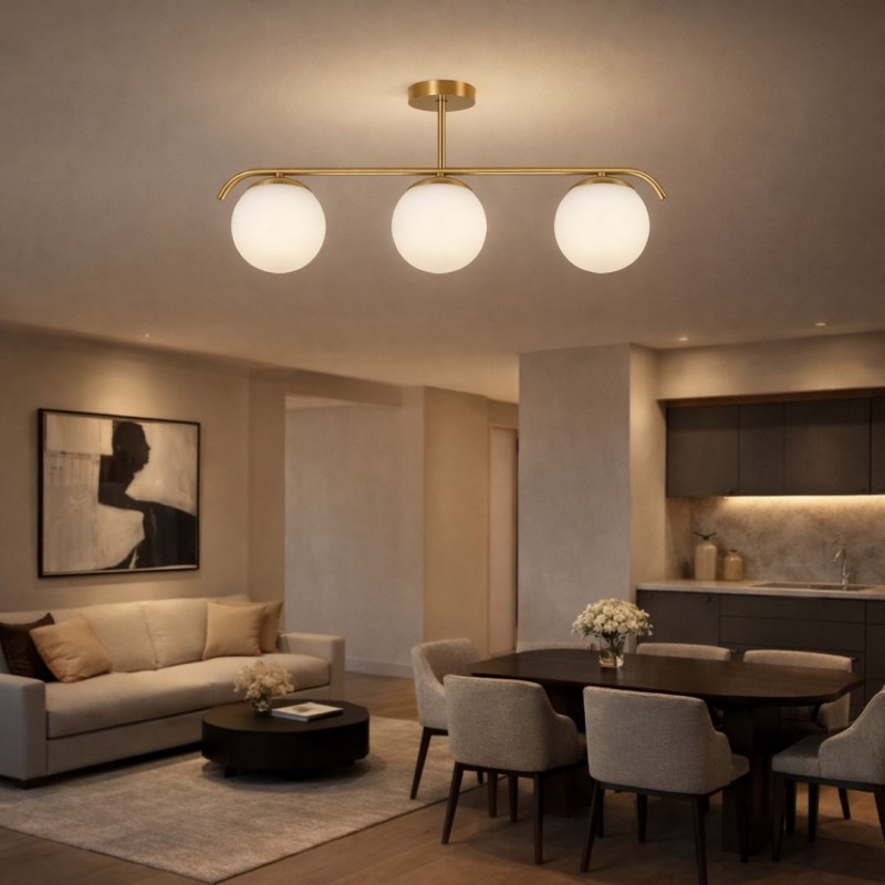 Plafonnier triple globe en verre et métal doré "TALÍ" - 3xE27