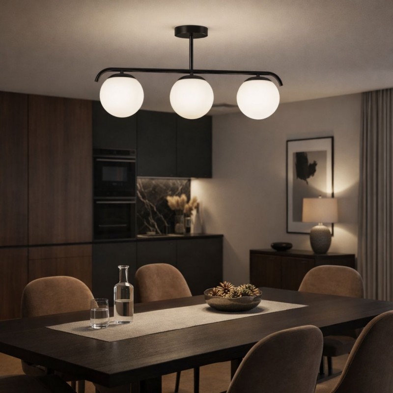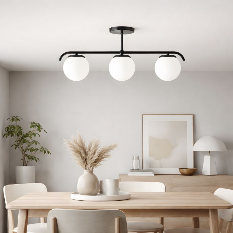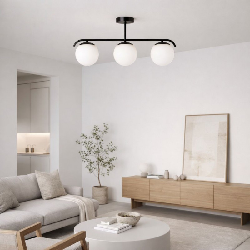 Plafonnier « Talí » soigneusement conçu avec trois superbes sphères en verre opalin.