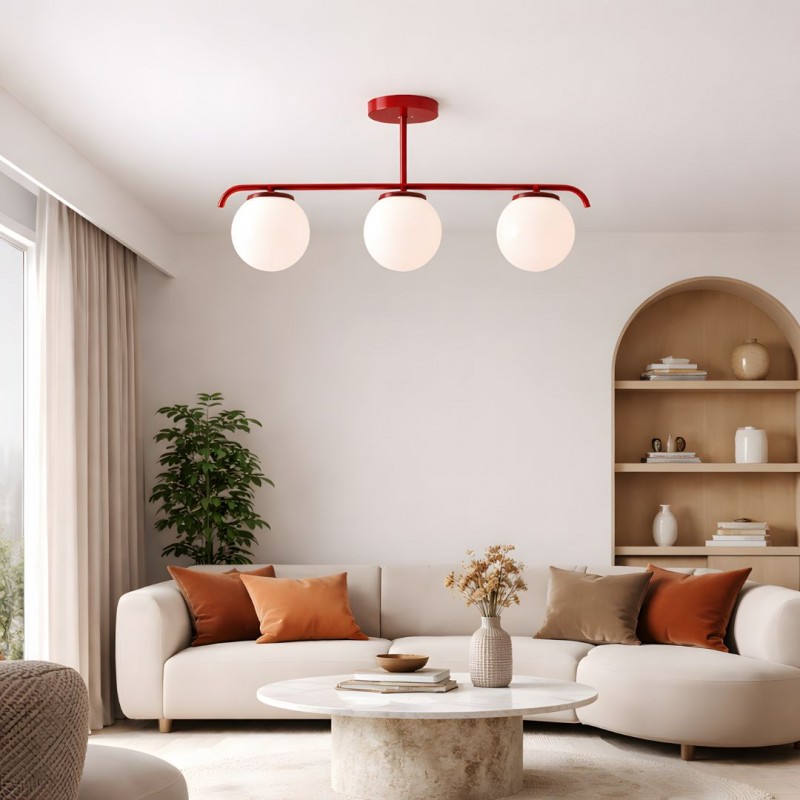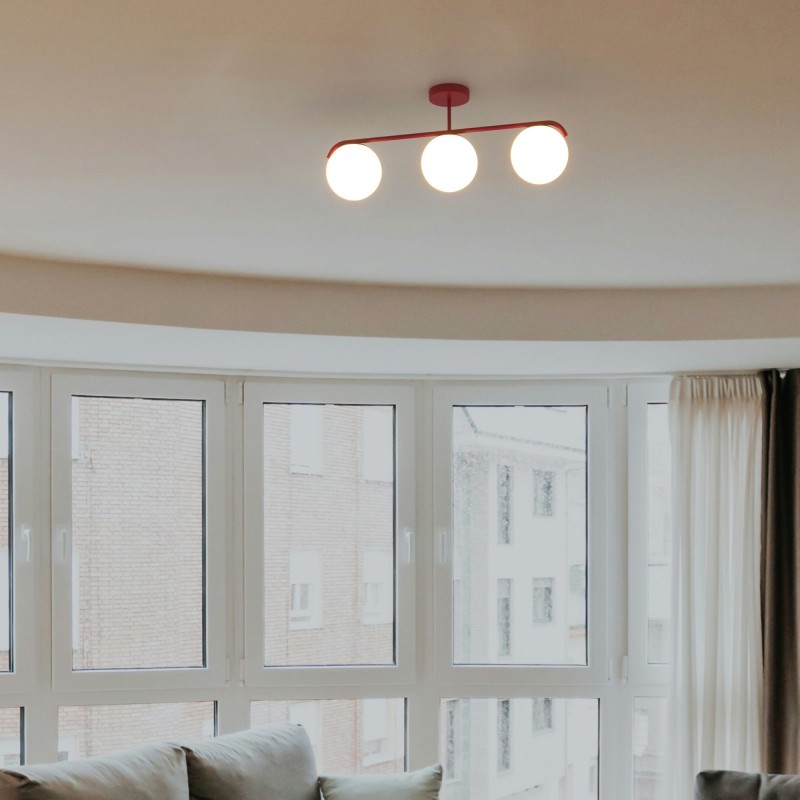 Plafonnier « Talí » soigneusement conçu avec trois superbes sphères en verre opalin.