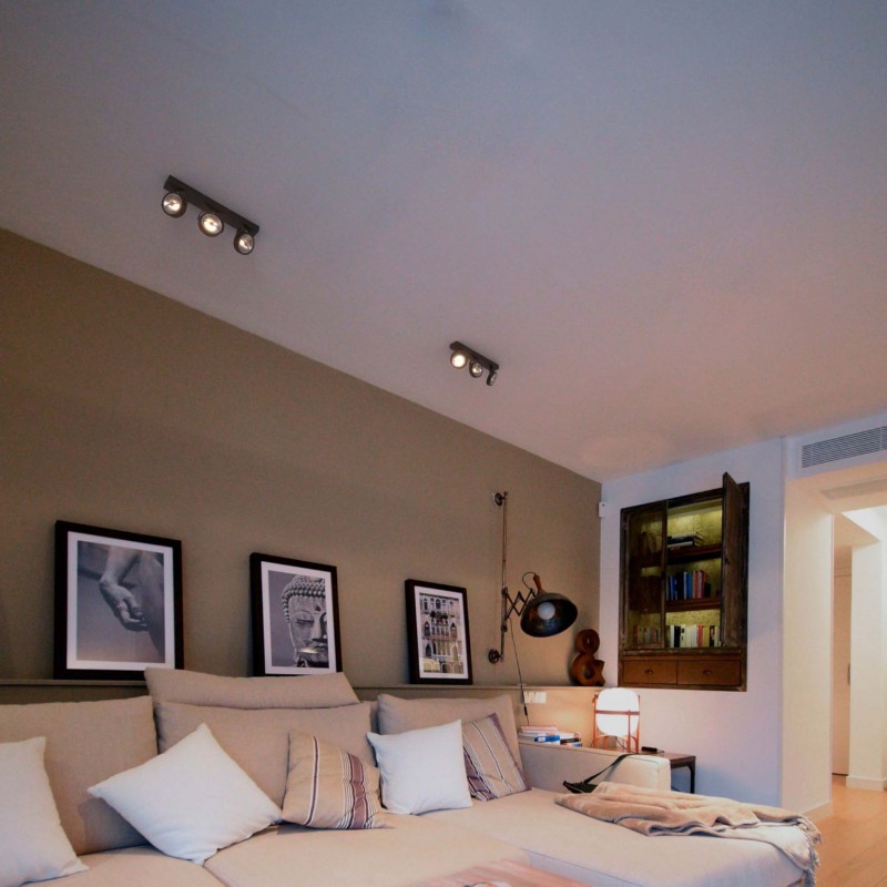 Le plafonnier IRIS avec 3 têtes orientables est concu pour des ampoules AR11 au culot GU10 et pour une utilisation en intérieur. Il est disponible en noir et blanc.