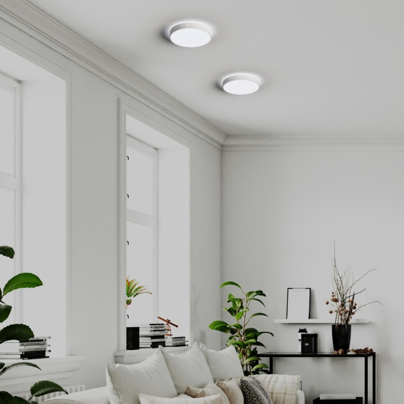 Plafonnier LED de 14W, en polycarbonate, offrant un éclairage uniforme et efficace grâce à son diffuseur intégré.