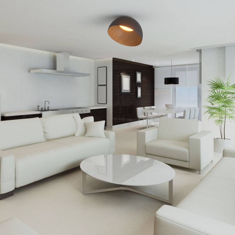 Le plafonnier LED incliné CCT de 24W, d'un diamètre de 50cm, combine élégance et fonctionnalité dans un design remarquable. Disponible en finition blanche ou noire, ce luminaire en métal présente un intérieur effet bois et un diffuseur central en polycarbonate.