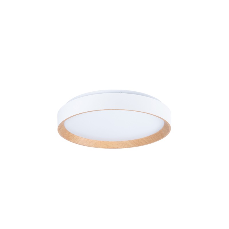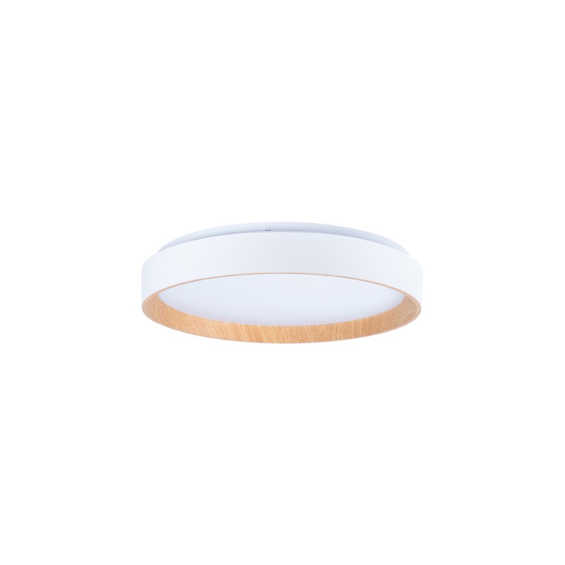 Ce plafonnier LED associe une structure en polycarbonate blanc associée à un intérieur couleur bois ajoute une touche chaleureuse et contemporaine à votre espace.