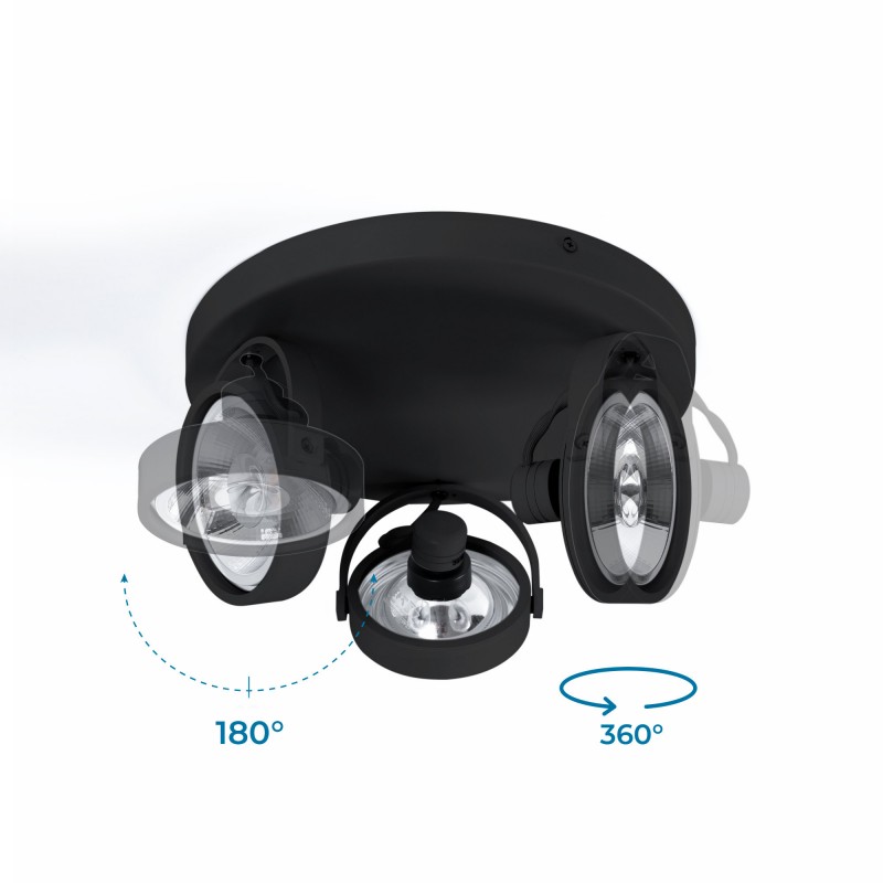 - Éclairage réglable : personnalisez l'éclairage en fonction de vos besoins grâce aux ampoules AR111 GU10 (non incluses). Chaque spot est doté d'un anneau décoratif.
