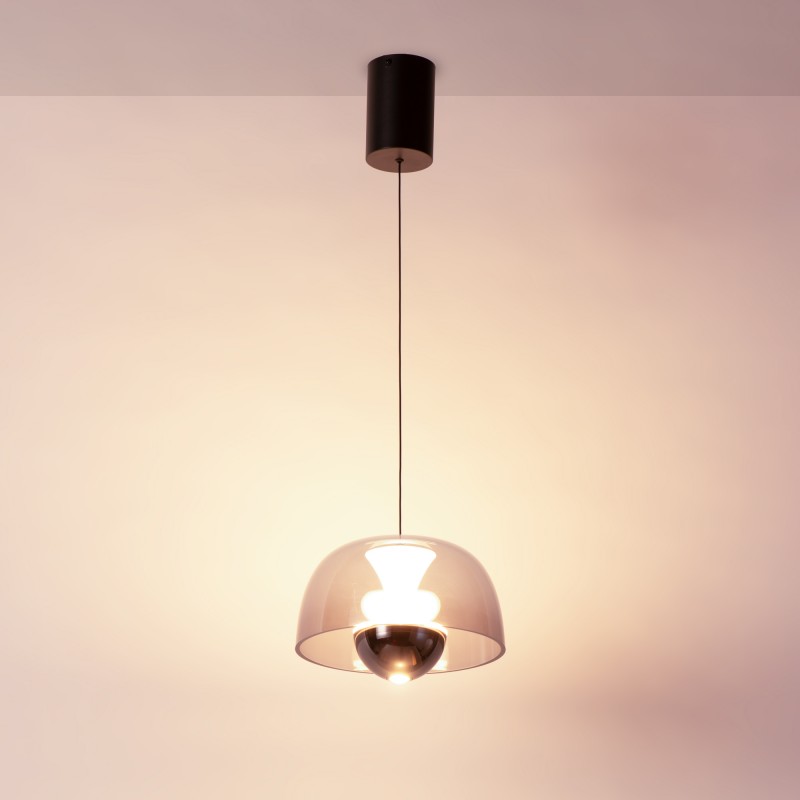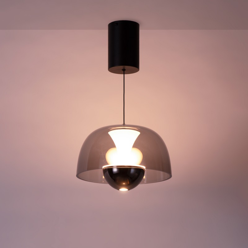 - Design distinctif : Abat-jour en acrylique fumé avec des éléments intérieurs métalliques qui créent un jeu visuel sophistiqué.