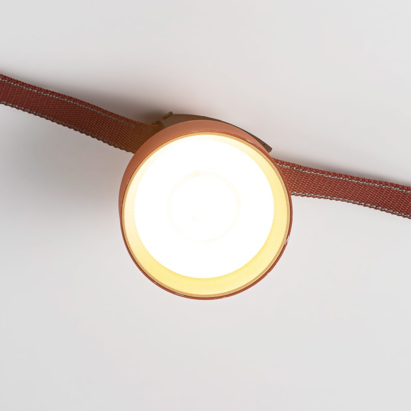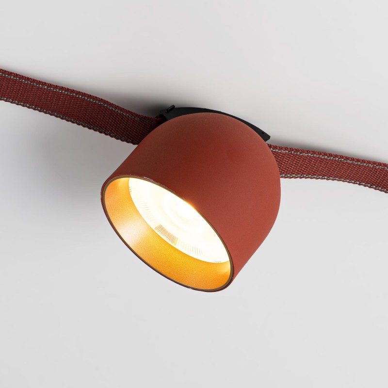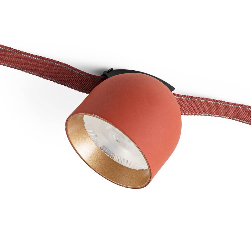 - Design contemporain : abat-jour semi-sphérique en finition terre cuite, harmonieusement associé au ruban textile conducteur.