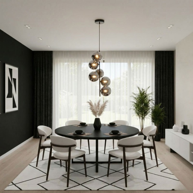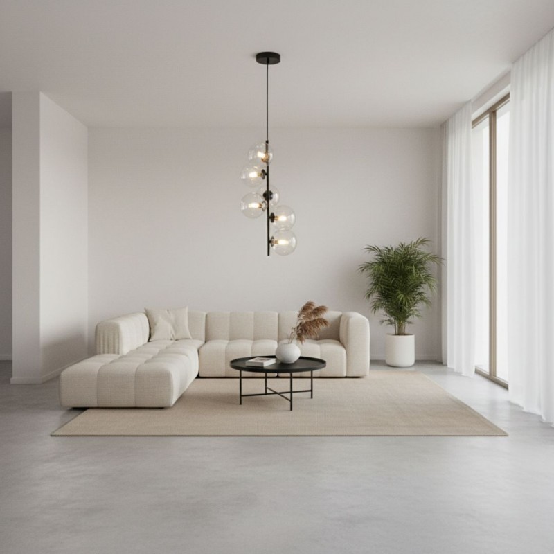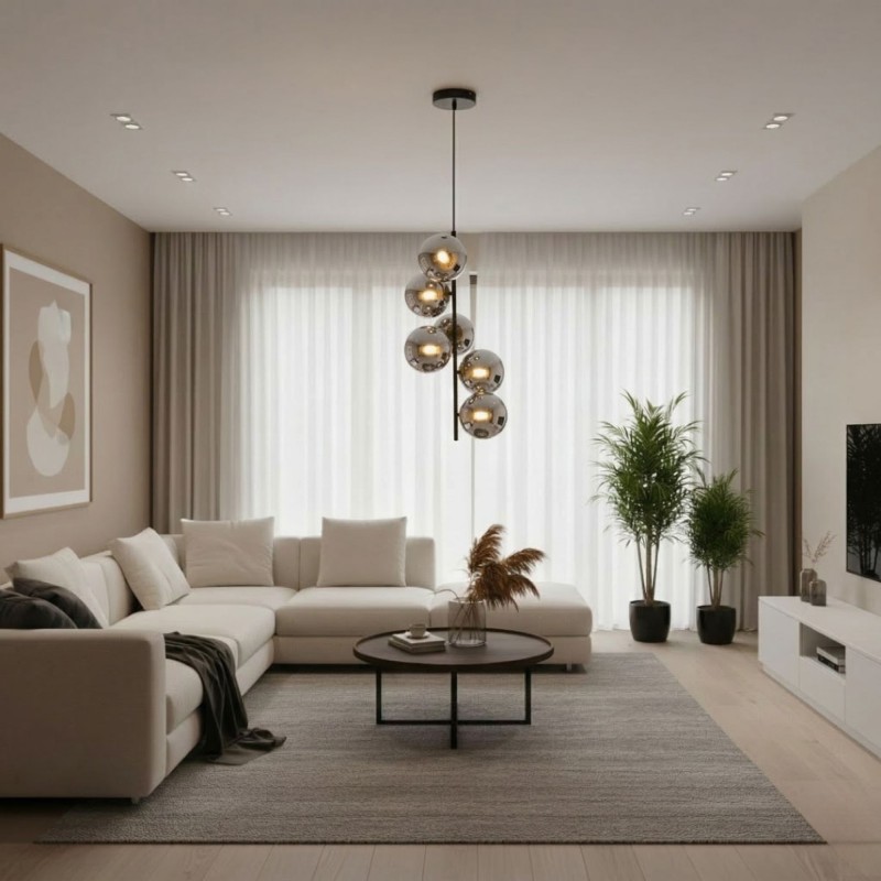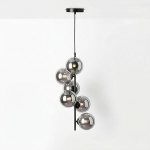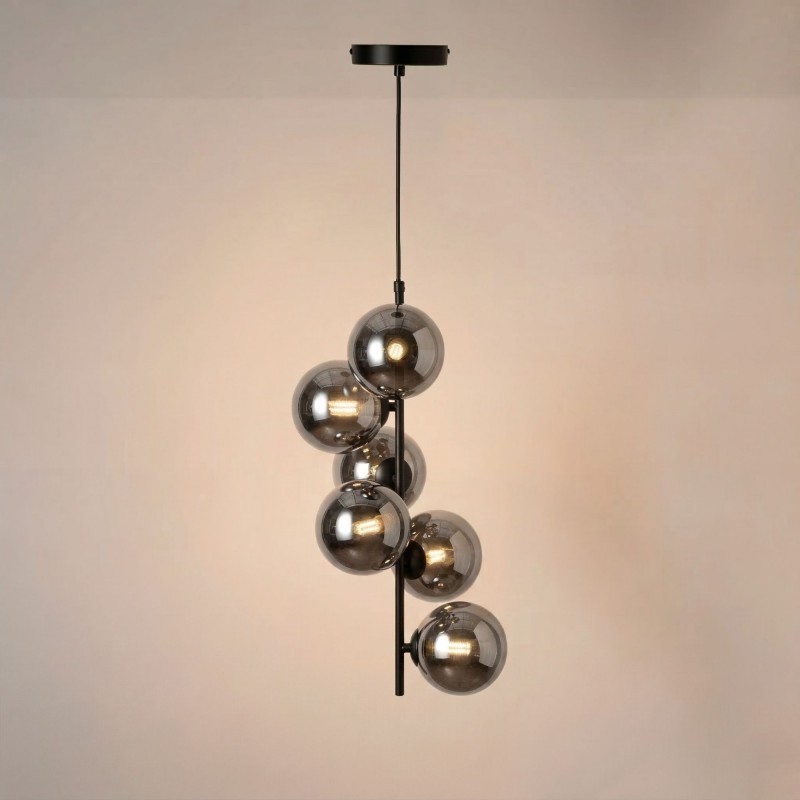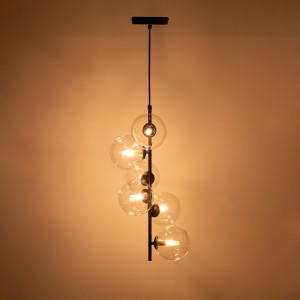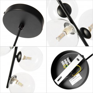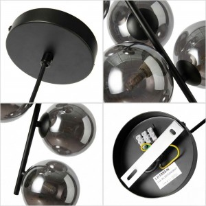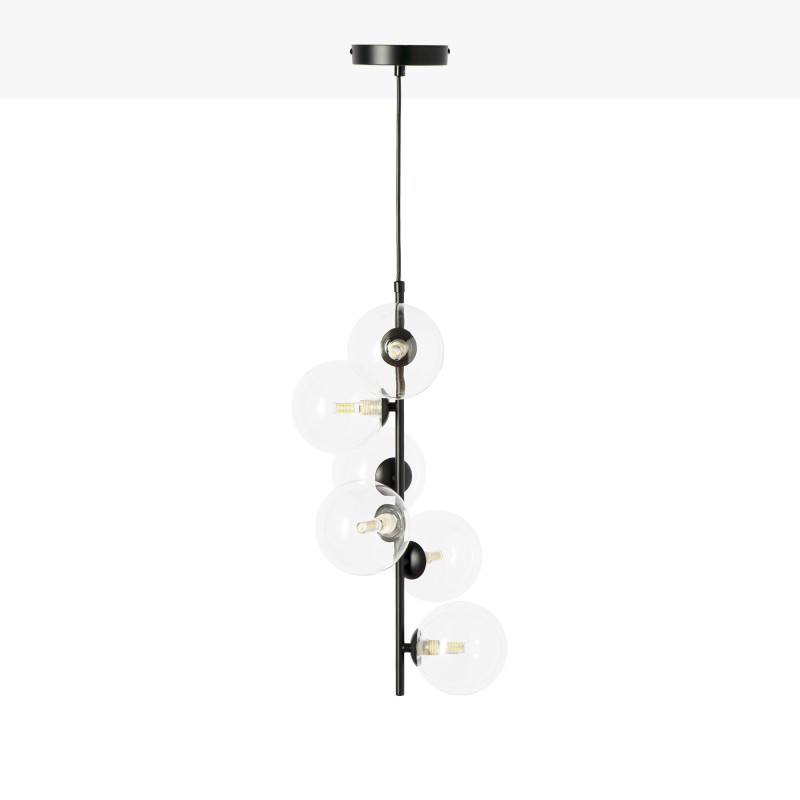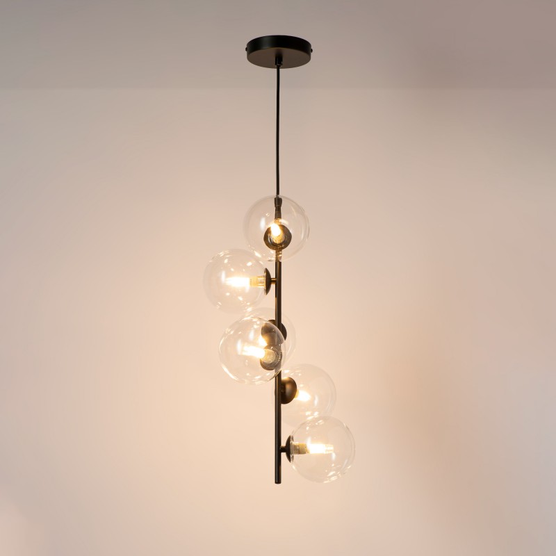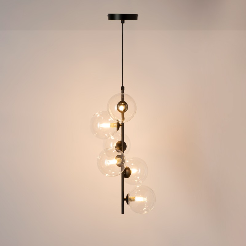 - Design élégant : Composée de 6 sphères en verre transparent et d'une structure centrale dorée ou noire, cette lampe s'adapte à différents styles de décoration.
