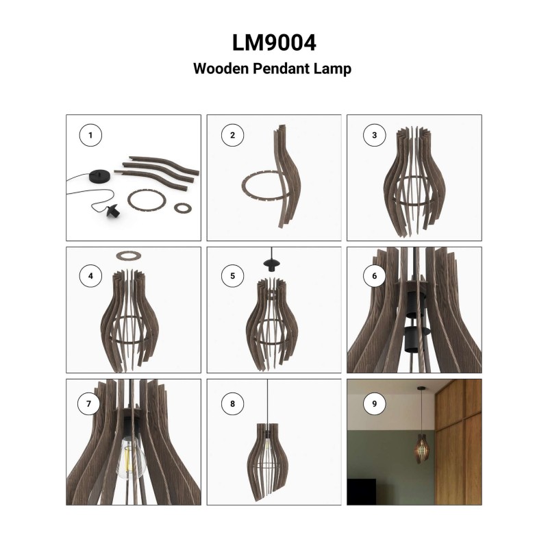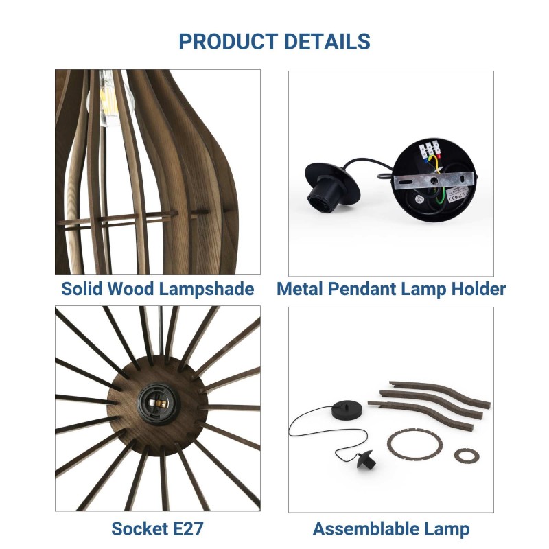 - Assemblage facile: L'abat-jour est composé de pièces en bois qui s'assemblent facilement, offrant une expérience d'installation sans tracas. Voir le manuel d'installation dans la section "téléchargements".
