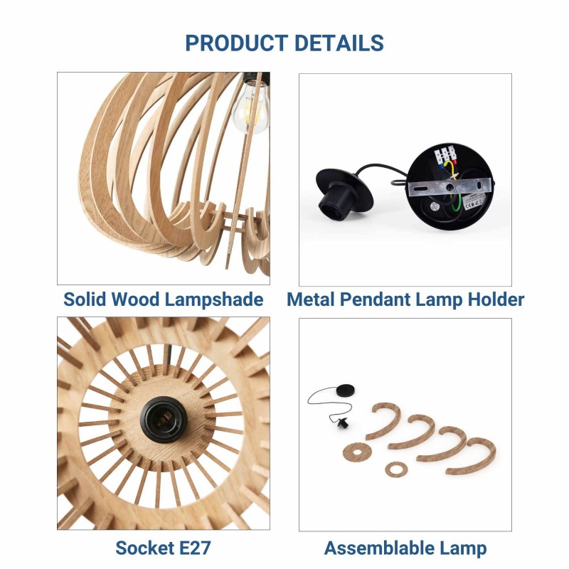 - Assemblage facile: L'abat-jour est composé de pièces en bois qui s'assemblent facilement, offrant une expérience d'installation sans tracas. Voir le manuel d'installation dans la section "téléchargements".