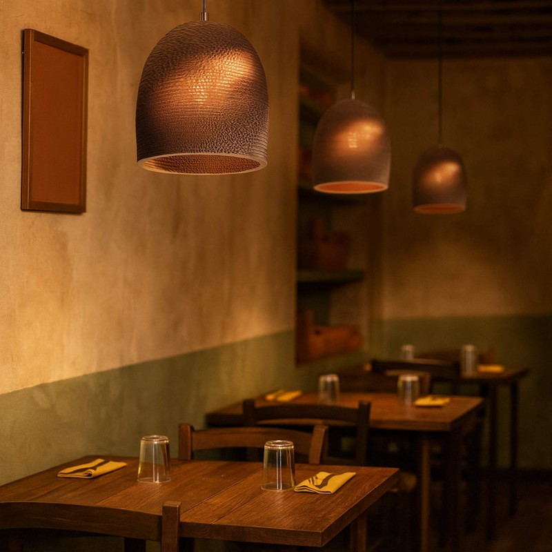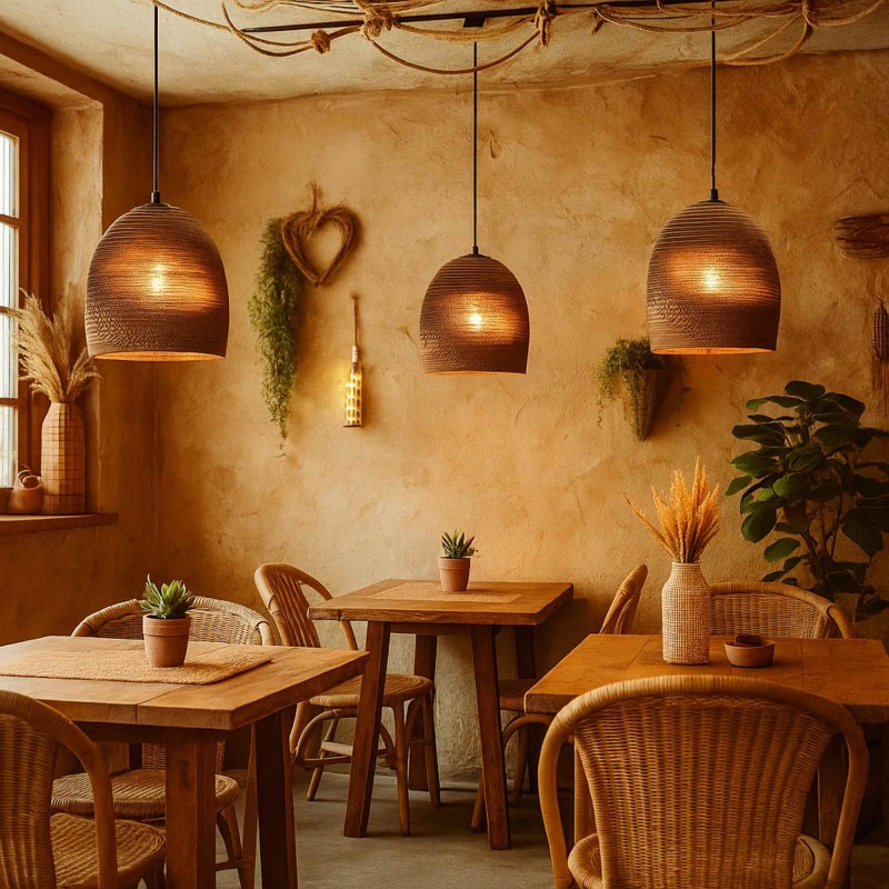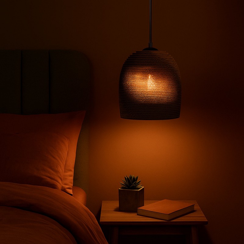- Matériau écologique : Abat-jour en carton ondulé, un matériau durable et recyclable qui apporte légèreté et durabilité.