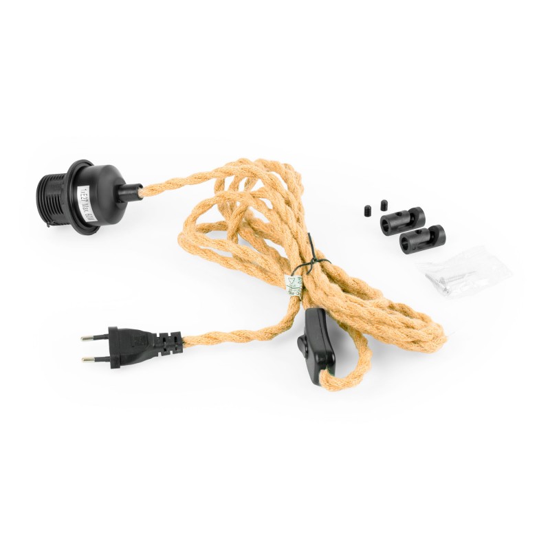 • Installation flexible : comprend un câble réglable avec deux crochets de décentralisation pour différentes configurations. Comprend un interrupteur et une prise Schuko, idéale pour les espaces sans point lumineux à proximité. Disponible en noir, blanc et corde naturelle.