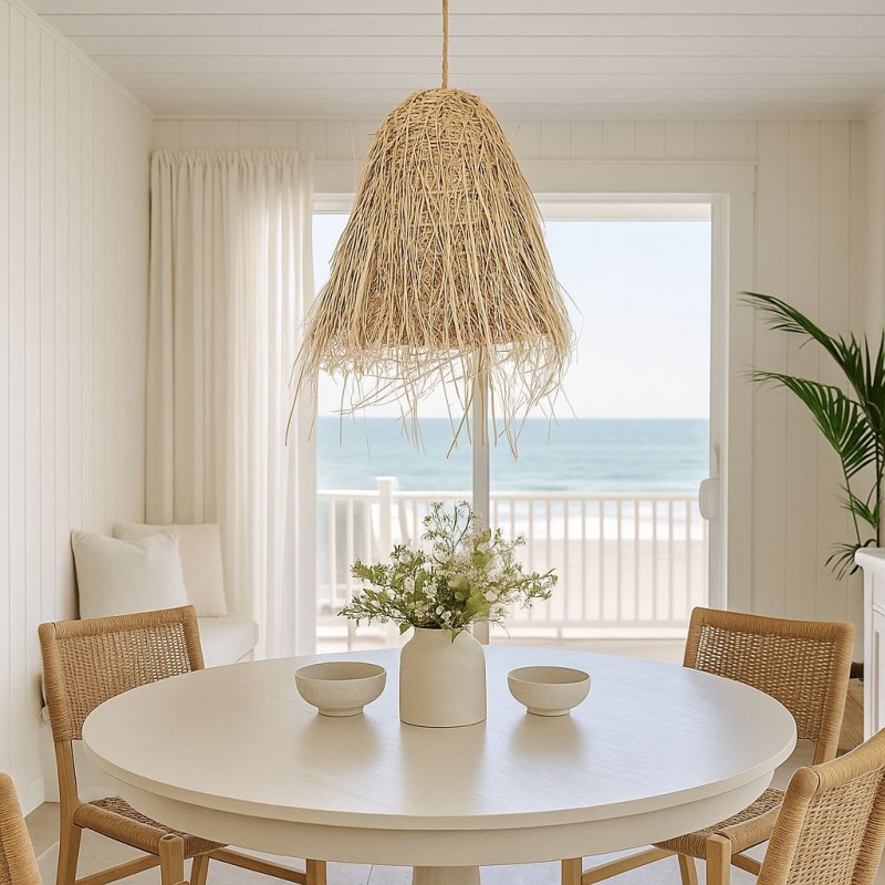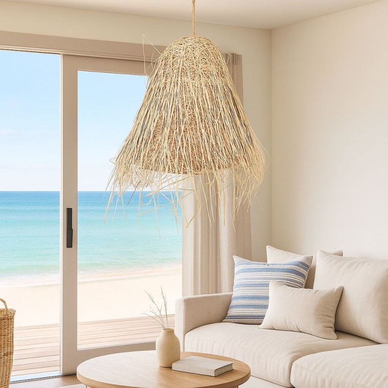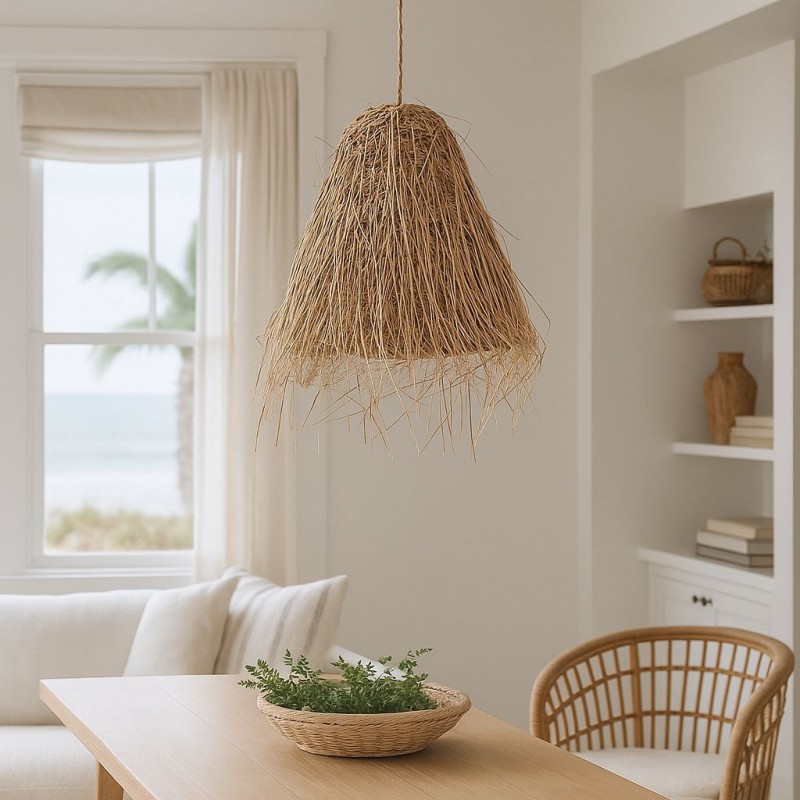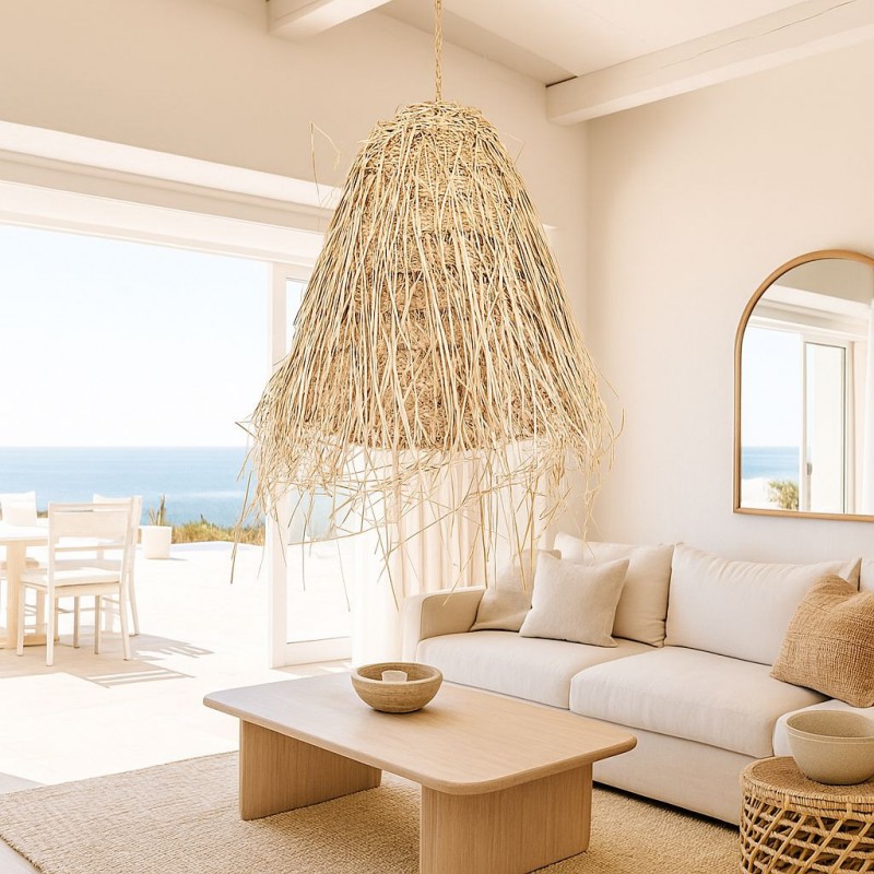 Son tressage naturel projette la lumière en douceur, créant un jeu d'ombres et un effet lumineux chaleureux qui apporte confort et personnalité à tout environnement.