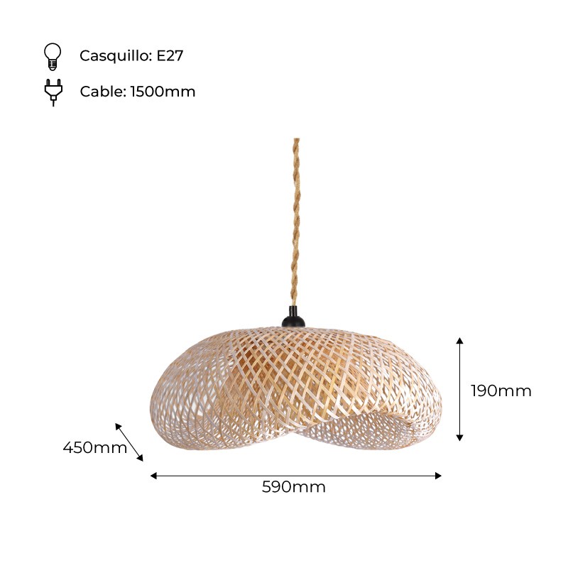Les dimensions de la suspension en osier "Vimet Lite" Référence : K170-B sont de 590x450x190 mm.