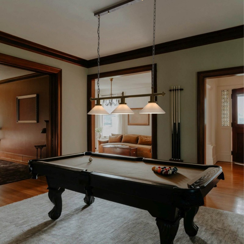 - Une touche spéciale : son design classique le rend parfait pour éclairer les tables de billard, créant une atmosphère sophistiquée et élégante. Idéal pour les espaces à l'atmosphère vintage.