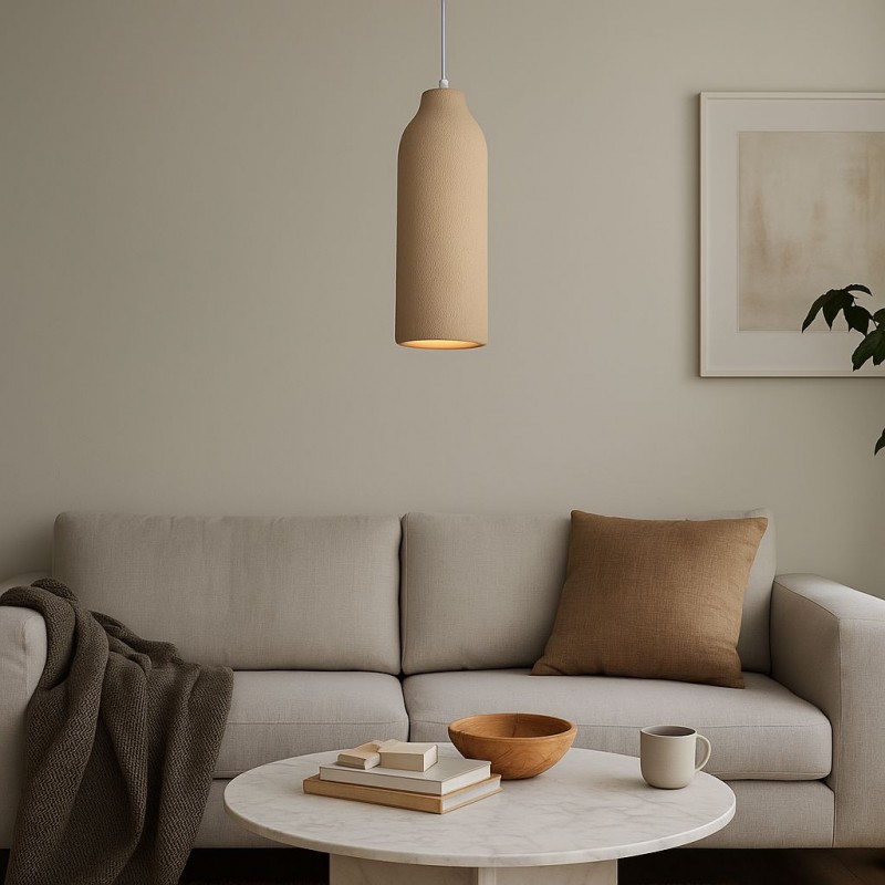 - Design texturé : Abat-jour à la finition rugueuse qui met en valeur son esthétique artisanale.