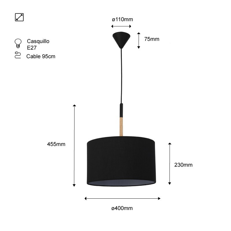 - Éclairage personnalisable : Ajustez l’intensité et le type de lumière avec une ampoule E27 (non incluse), en adaptant l’éclairage à chaque occasion ou besoin.
