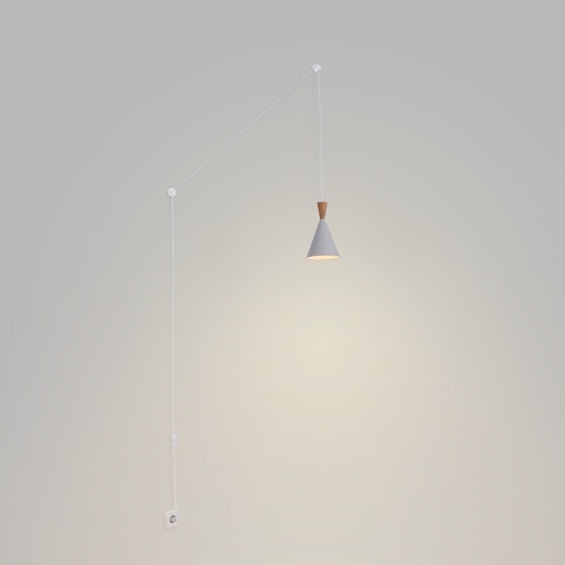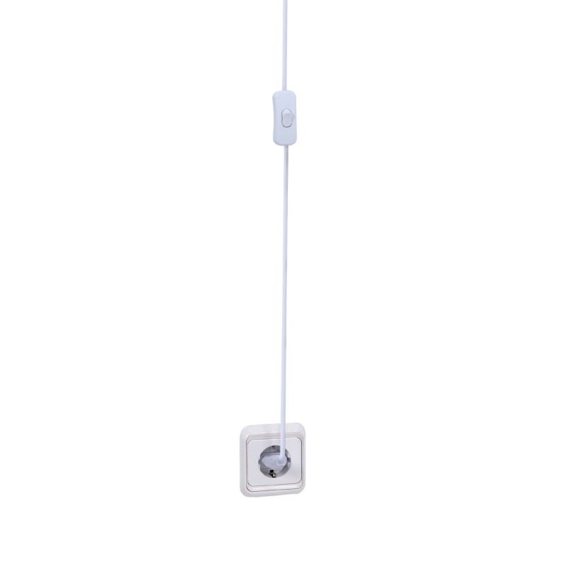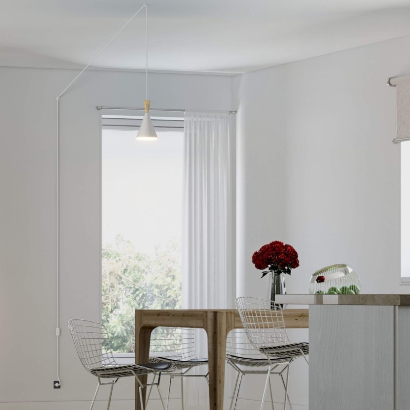 De plus, elle est accompagnée d'un câble de 3,3 mètres de long, ajustable grâce à deux crochets décentralisateurs qui permettent diverses configurations d'installation. Le câble est également équipé d'un interrupteur sur son trajet et se termine par une prise standard de type Schuko. Ce système simplifie grandement l'installation de la lampe dans des endroits où il n'y a pas de source lumineuse à proximité.