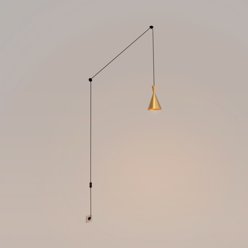De plus, elle est accompagnée d'un câble de 3,3 mètres de long, ajustable grâce à deux crochets décentralisateurs qui permettent diverses configurations d'installation. Le câble est également équipé d'un interrupteur sur son trajet et se termine par une prise standard de type Schuko. Ce système simplifie grandement l'installation de la lampe dans des endroits où il n'y a pas de source lumineuse à proximité.