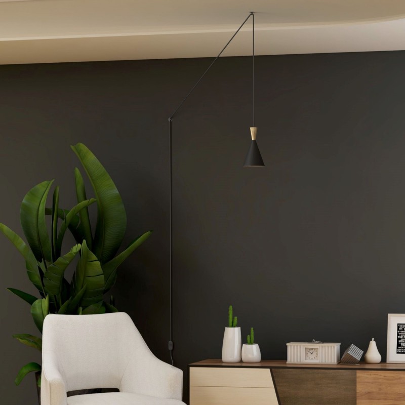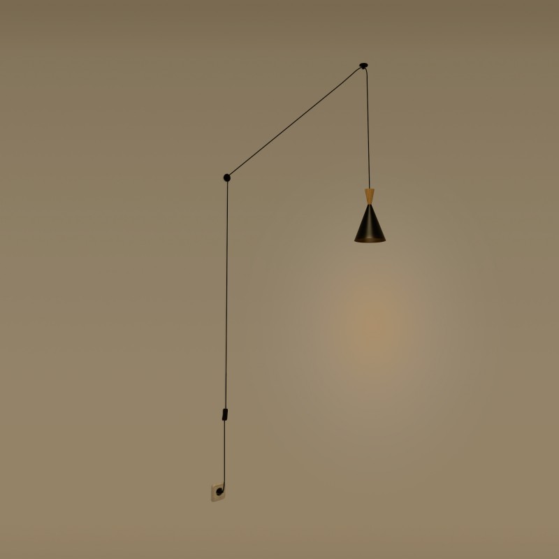 De plus, elle est accompagnée d'un câble de 3,3 mètres de long, ajustable grâce à deux crochets décentralisateurs qui permettent diverses configurations d'installation. Le câble est également équipé d'un interrupteur sur son trajet et se termine par une prise standard de type Schuko. Ce système simplifie grandement l'installation de la lampe dans des endroits où il n'y a pas de source lumineuse à proximité.
