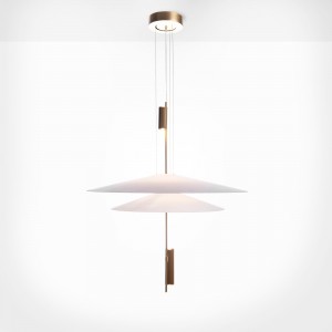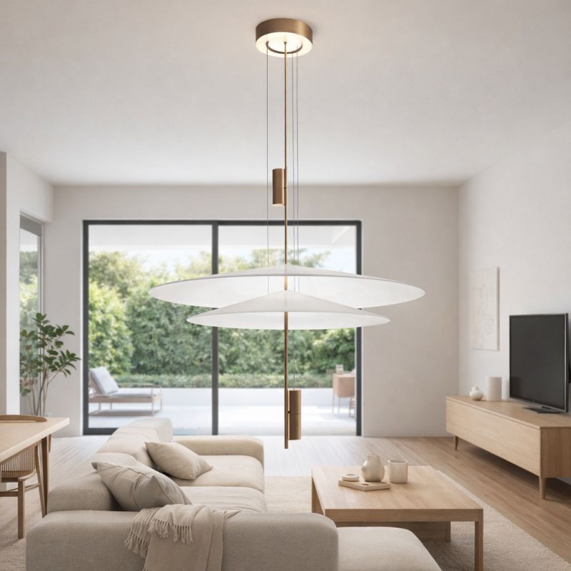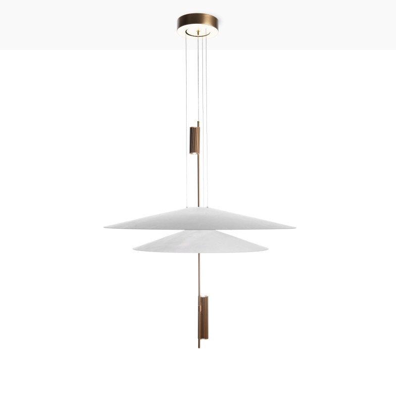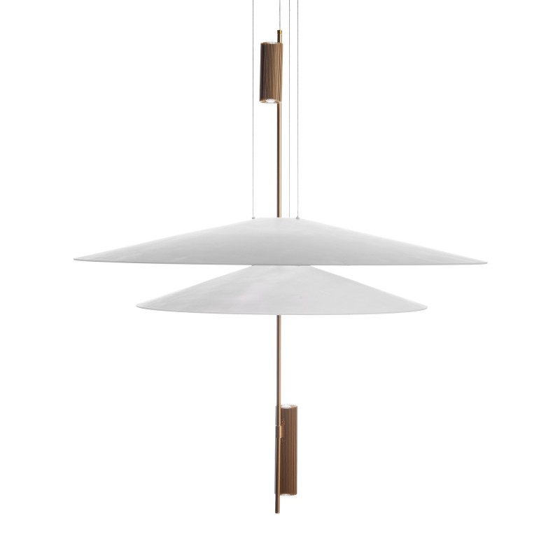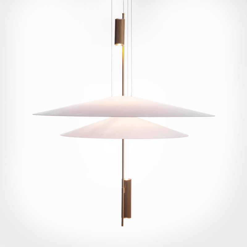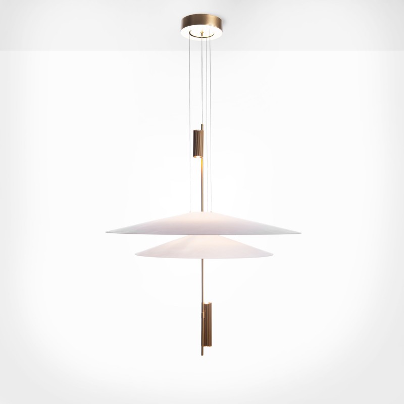 Cette lampe se distingue par son design architectural formé par des disques suspendus qui semblent flotter dans l'espace et qui, avec les spots LED intégrés, créent un éclairage précis, enveloppant et visuellement très léger.