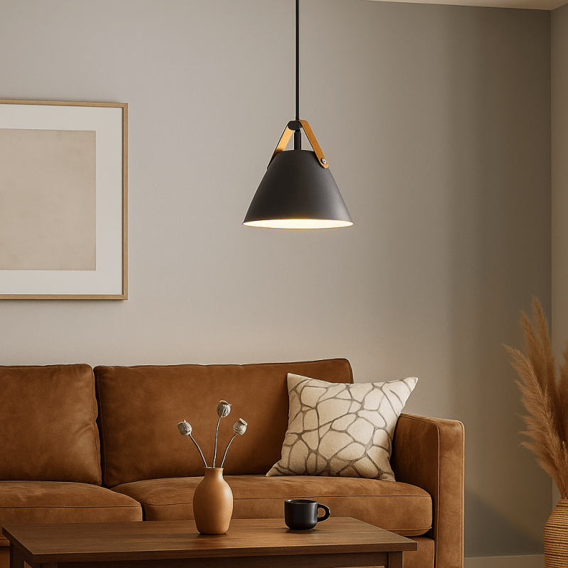 Lampe d'intérieur suspendue décorative avec lanière en cuir