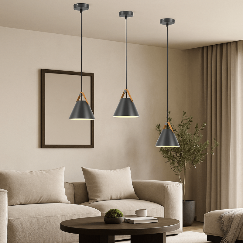 Vous pouvez choisir la lampe suspendue parmi les finitions noir, gris ou blanc. L'abat-jour et la lanière en cuir sont sûrs et durables, offrant une sécurité au luminaire. Lampe à suspension parfaite à installer dans les chambres, les comptoirs de bar, les restaurants, etc. Lampe d'intérieur décorative pour les intérieurs domestiques ou professionnels.