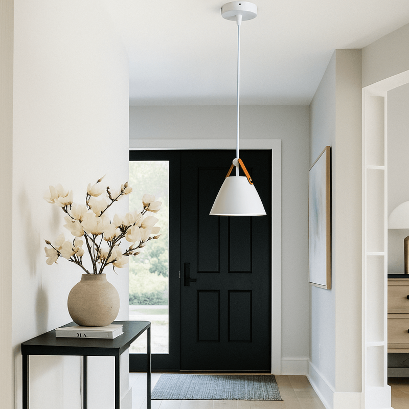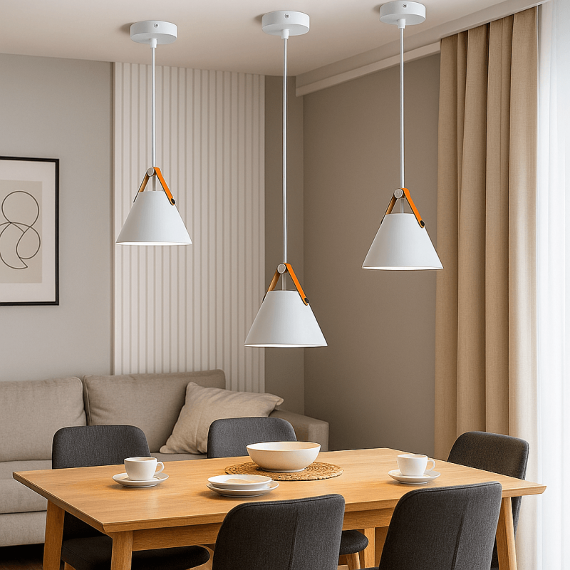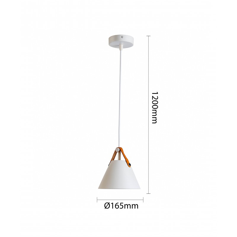 Vous pouvez choisir la lampe suspendue parmi les finitions noir, gris ou blanc. L'abat-jour et la lanière en cuir sont sûrs et durables, offrant une sécurité au luminaire. Lampe à suspension parfaite à installer dans les chambres, les comptoirs de bar, les restaurants, etc. Lampe d'intérieur décorative pour les intérieurs domestiques ou professionnels.