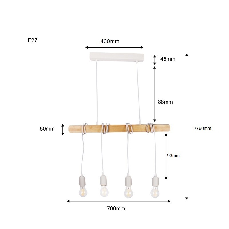Cuenta con cuatro casquillos E27 que brindan la posibilidad de instalar distintos tipos de bombillas E27. Recomendamos especialmente las bombillas LED de filamento estilo vintage, que combinan a la perfección con esta lámpara.