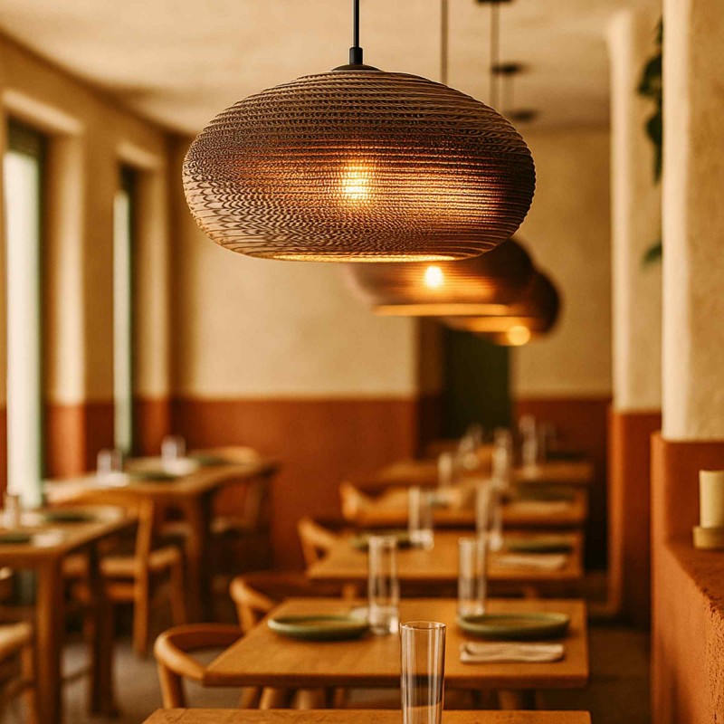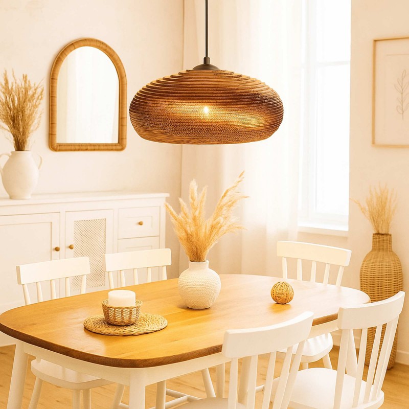 - Matériau écologique : Abat-jour en carton ondulé, un matériau durable et recyclable qui apporte légèreté et durabilité.
