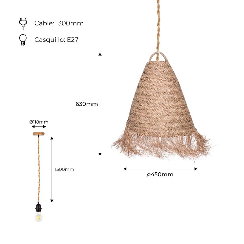 Que ce soit à la maison, dans un restaurant, un café ou tout autre établissement commercial, la lampe de plafond "Nam" apportera une ambiance rustique et chaleureuse à votre environnement. Les fibres naturelles apportent un cachet personnel et distinctif, nous reliant à la nature et offrant une option écologique grâce à leur caractère biodégradable et renouvelable.