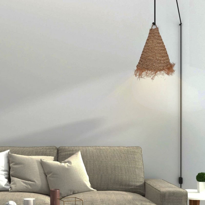 Suspension en fibre naturelle "NAM XL" avec interrupteur et prise