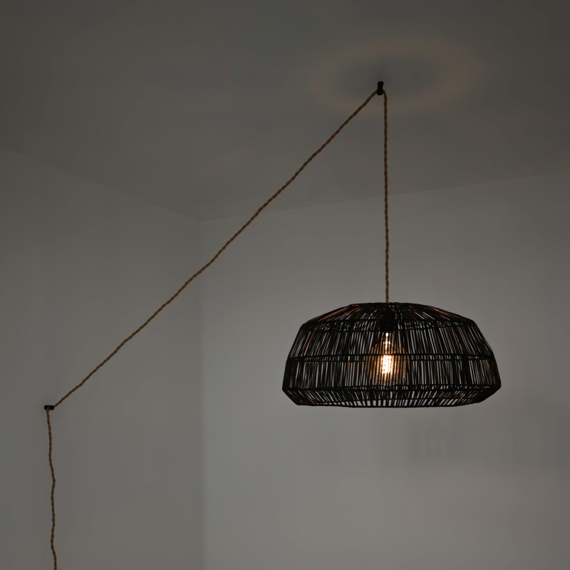 Suspension en osier "ASTRID" - Avec interrupteur et prise - E27