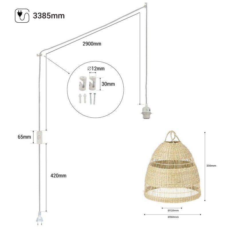 Cette lampe décentrée est compatible avec toute ampoule E27 d'une puissance maximale de 60W (non incluse) et est disponible en trois couleurs de câble (blanc, noir et corde naturelle) pour s'adapter à l'environnement où elle sera utilisée.
