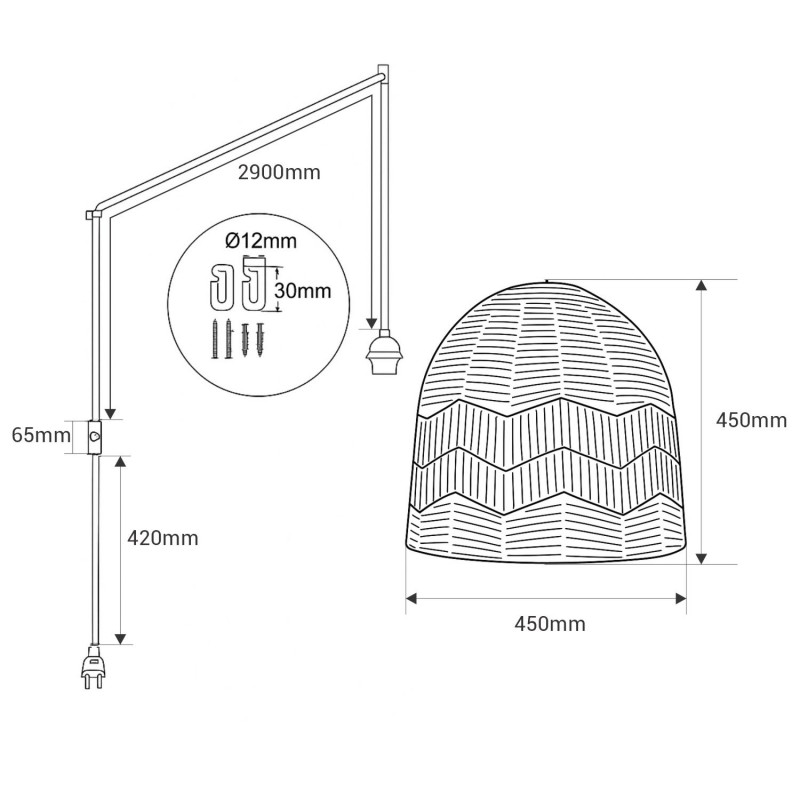 • Installation flexible : comprend un câble réglable avec deux crochets de décentralisation pour différentes configurations. Comprend un interrupteur et une prise Schuko, idéale pour les espaces sans point lumineux à proximité. Disponible en noir, blanc et corde naturelle.